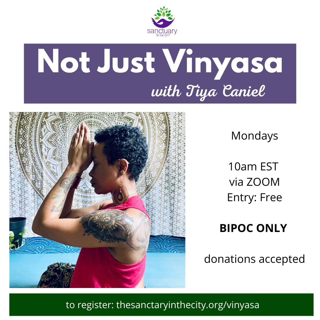 Tiya Caniel is a NC based yoga teacher, creative, and intuitive guide. Her pronouns are she/her/hers & they/them/theirs. Tiya leads virtual yoga sessions centered around mindful and love-driven asana practice. Her yoga practice began in 2012 and developed quickly into a passion. In 2016 Tiya completed her 200-hour certification from Asheville Yoga Center and began teaching very soon after.